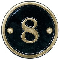 Cast Brass Round House Sign available in any number - up to 2 digits max. Hand polished using buffing wheels and buffed to a high sheen. Not laquered and therefore will benefit from periodic cleaning, using standard brass cleaner (using the manufacturers instructions). 4.5 inches in diameter. Available in Numbers 1 to 99. Available in 21 days.
