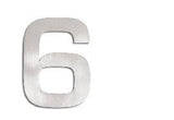 The Ascot. Comes with mounting kit and drilling template Stainless Steel, Matt. Unique Fixing System ensures screws cannot be seen from the front. Number 6 is 112mm wide x 2mm thick x 150mm high. Typeface: Arial.