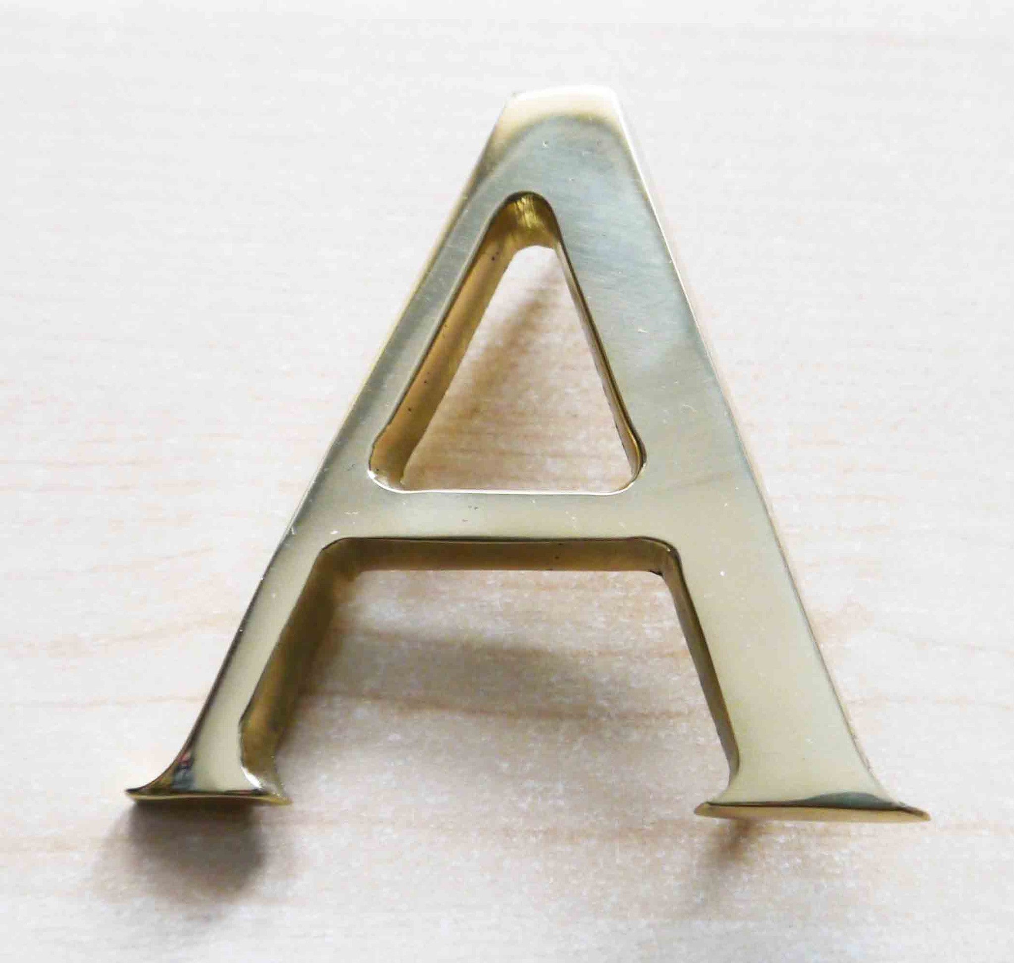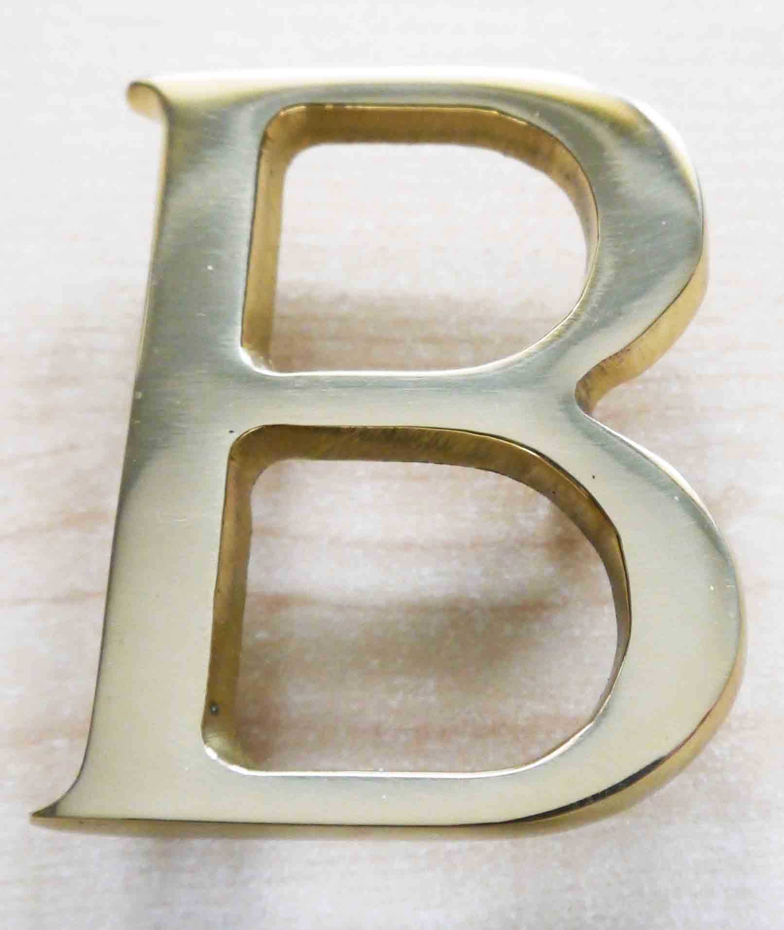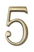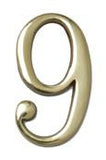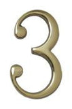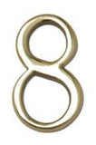 Polished Brass house numerals. 75mm high. The Pin fixings on the reverse push into fixing surface to hold secure. Ideal for wooden doors.