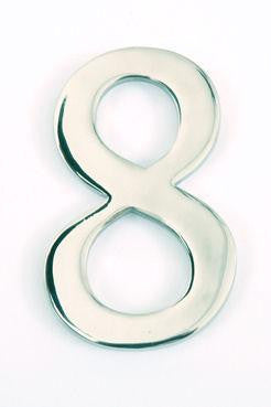 Polished stainless steel house numbers in large size.