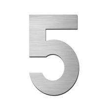 House number signs. Good adhesion to Aluminium, Stainless Steel, Copper, Glass, UPVC surfaces. Laser cut from grade AISI 316 stainless steel. Simply peel off from reverse and stick to your chosen surface. Number 5 is 90mm wide x 1mm thick x 150mm high. Normally despatched within 24 hours of your order.