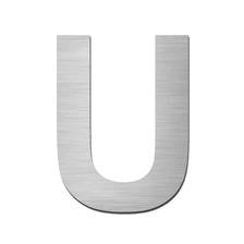 Stainless Steel Letter U in Upper Case Our Belgravia style of House Letter is guaranteed to add the "Wow" factor to any home. This number has an ingenious fixing system which means you cannot see the screws. We also supply you with a drilling template to make fitting easy. Dimensions are 150mm high with a thickness of 3mm and width of 115mm.